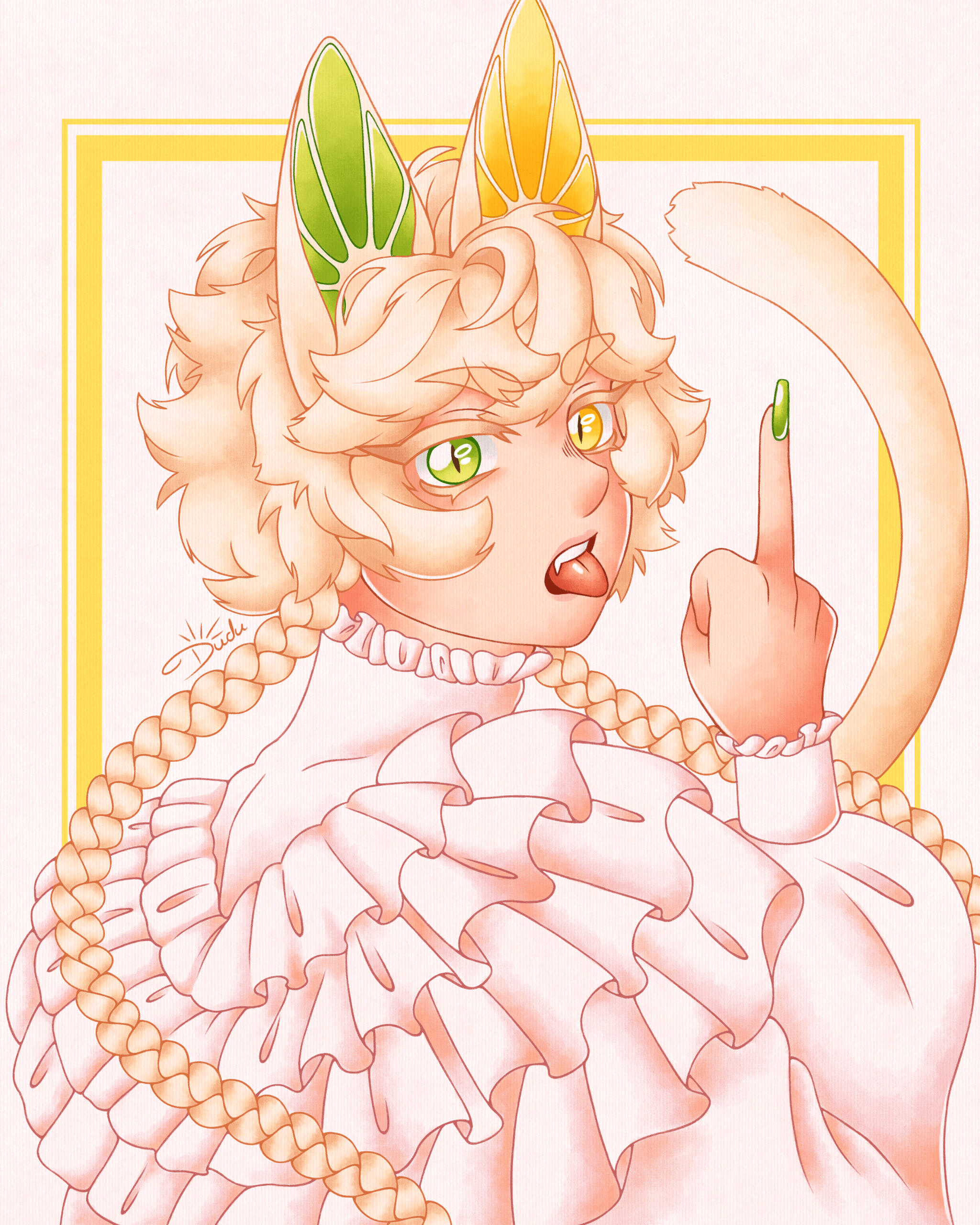○ En tant qu’artiste, les droits d’auteur m’appartiennent. Vous n’avez donc pas le droit de revendiquer mon travail comme étant le vôtre.○ Vous devez me créditer pour chaque partage de mon travail.○ Gardez en tête que je partagerai la commande également de mon côté et je l’utiliserai pour promouvoir le reste de mon travail. Cependant, n’hésitez pas à me dire si je ne dois pas partager le dessin tout de suite (projet avec date de sortie, cadeau, etc).○ J’interdis l’utilisation de mon travail à des fins commerciales (print, goodies, merch, etc).○ J’interdis également l’utilisation de mon travail dans l’entraînement d’IA générative et pour la création de NFT.